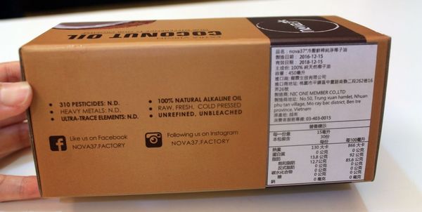 但好油也要有完善良好的原料及製程,nova37冷壓初榨鹼性椰子油就讓人覺得是可以安心使用的椰子油唷!