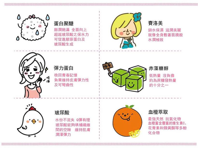 因為它加入高濃度玻尿酸、彈力蛋白、蛋白聚醣、賽洛美、赤藻糖醇、血橙萃取