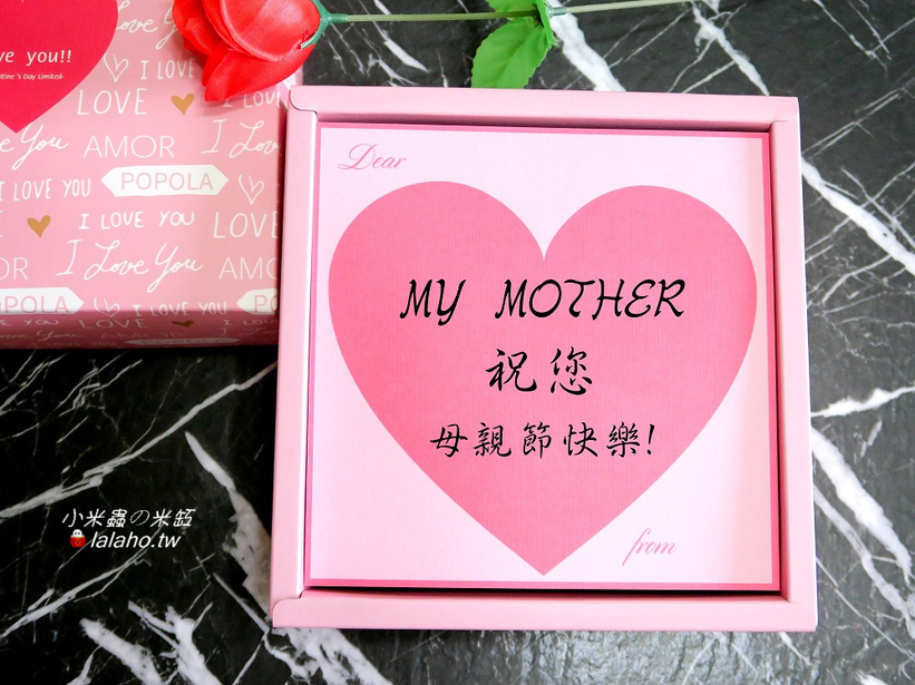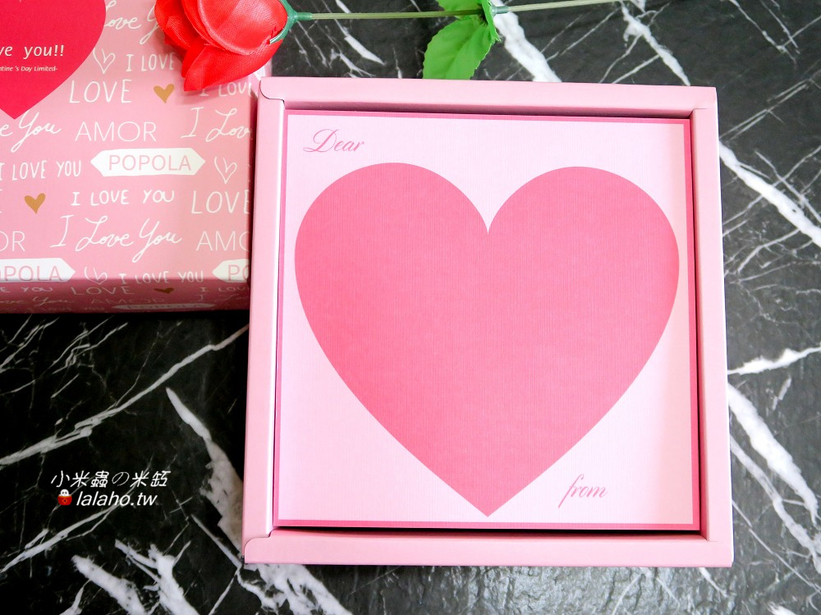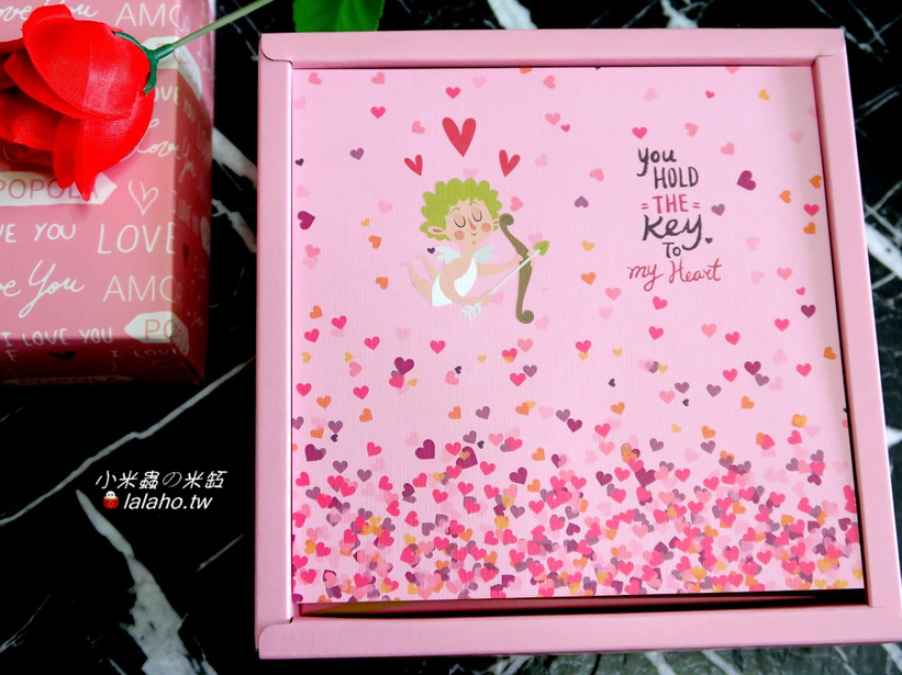 將禮盒打開,印入眼前的是一張畫有愛心的紙卡卡片,在上面寫上祝福、心底的話,會令收到的人感到驚喜也溫馨!