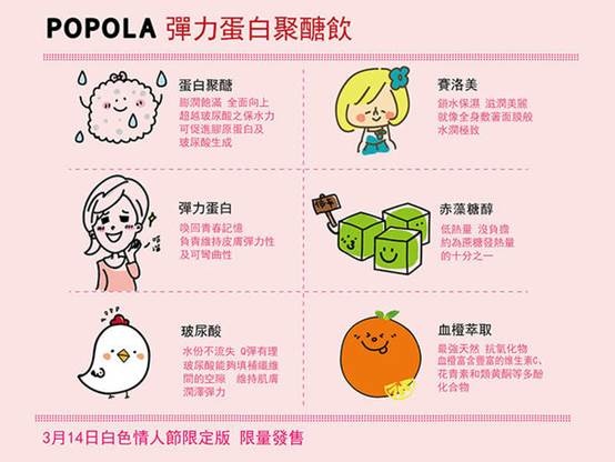 看POPOLA彈力蛋白聚醣飲官網的圖片,就可以更了解這小小一瓶有多麼大的魅力囉!