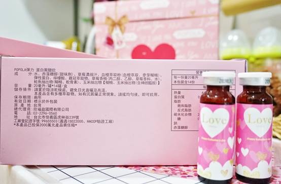 POPOLA彈力蛋白聚醣飲不只外盒滿滿的”LOVE”,裏頭也是大大的愛心,整個看了讓人融化啊!