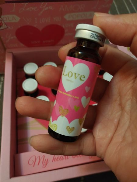 小小的瓶身上頭還 滿滿的愛心秀著l.o.v.e~ 光是視覺上 效果就足以讓每個 水水們 心情特好