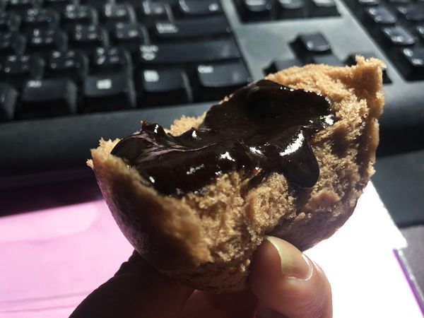 所有包子裡最爆漿的就是它啦!正燙手的想剝開看內餡,馬上被洶湧而出的可可燙到手>"<手指都沾染了濃郁的巧克力香...