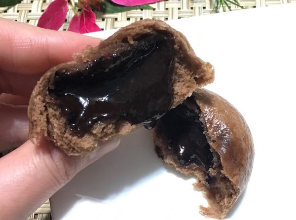 濃厚的巧克力醬不停的從可可的麵皮流出來,