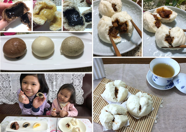 「嗯~ 奶黃包好好吃.芝麻包也好好吃.可可包也好好吃.叉燒包也好好吃」