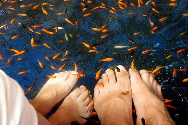 那邊就有很多溫泉魚咬腳的地方,但大部分都是要收費的唷~