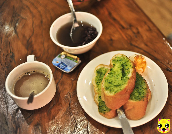 也有沙拉、麵包,飲料則有紅茶、豆漿、咖啡、柳橙汁,