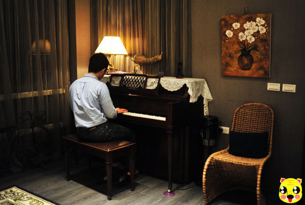 房間的燈光也很柔和,從樓梯間到進入房間,