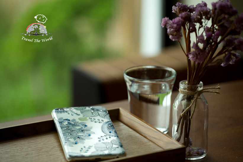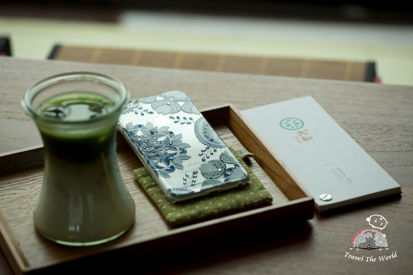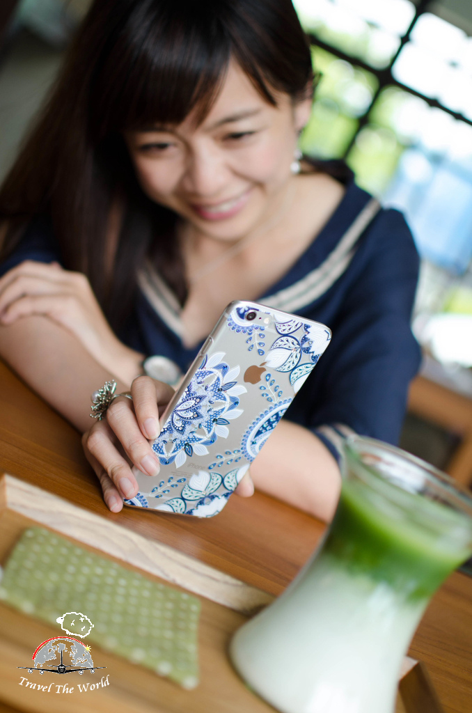 將手機殼帶出門與朋友喝杯下午茶,將它放置在抹茶旁邊