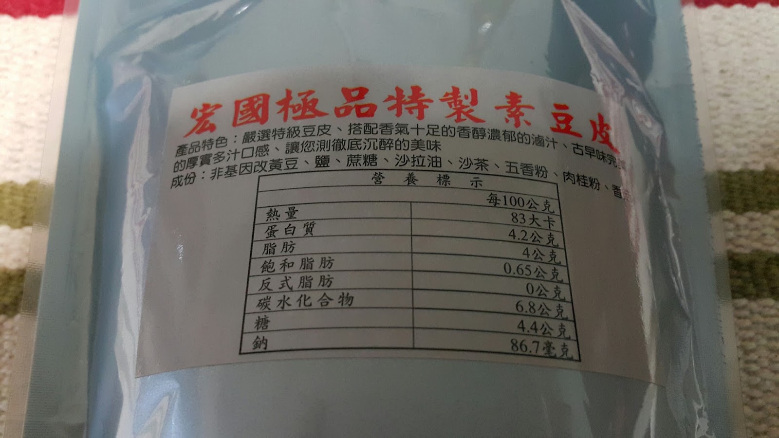 再來來開素豆皮,上頭有貼保存期限喔,有告訴大家要放冷藏,在存期限也比較短。