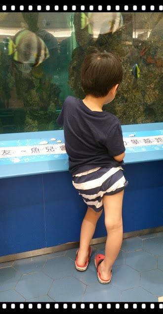 接著朝大葉高島屋前進,剛好2點抵達,趕上一天只有2場的餵食秀。襯仔仔第一次親眼看到有人潛進大魚缸裡餵食,發出嘖嘖稱奇的眼神!