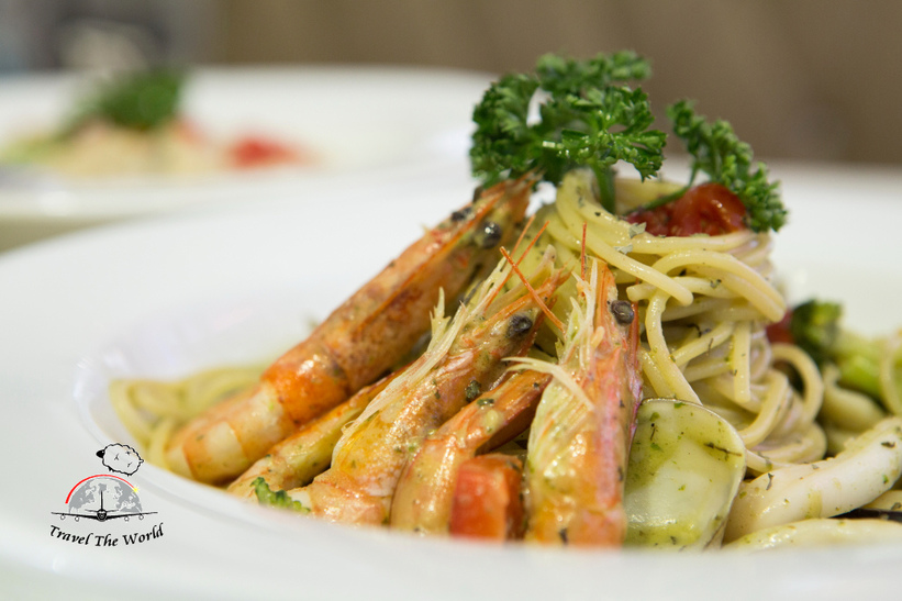 吃起來帶點白酒的香氣,義大利麵吃起來也有入味。整個就是好吃啊~