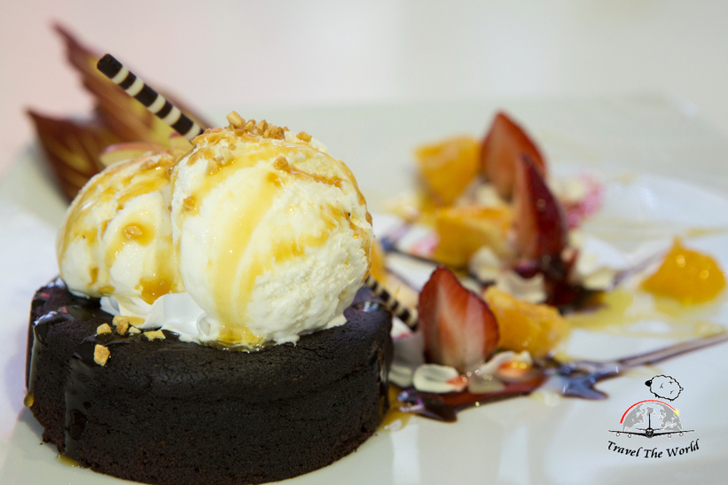 散發著濃濃巧克力香氣,剖開蛋糕後巧可力熔炎,