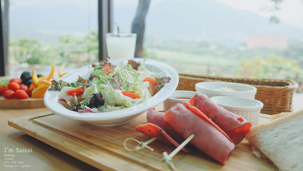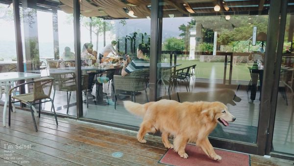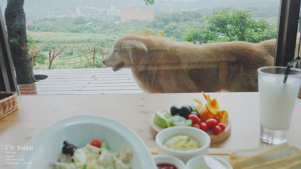美味的早餐搭配上的是美麗的風景,還有可愛的黃金獵犬在外面走來走去,偷看你吃早餐之外