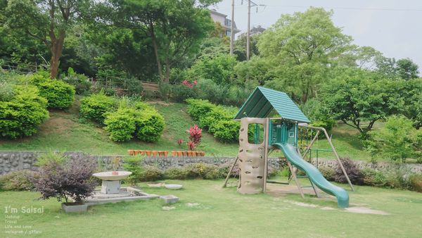 除了鞦韆、滑梯之外,也有小沙地可以給小朋友玩