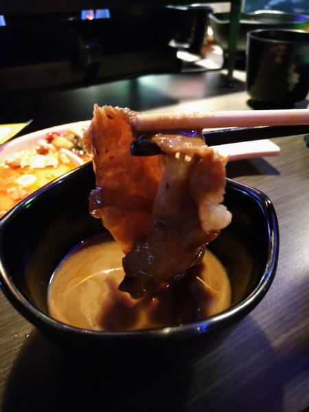 而且店家附贈的芝麻醬包更是讓算過的豬肉片 更顯鮮美, 拉麵也一定要以沾麵的型態來品嚐