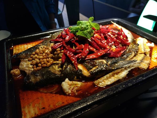 而且水貨烤魚將烤魚的技術推上最高境界與最多變化(5魚18吃),將五種魚的處理方式結合18種口味,有香辣味/鮮青椒味/泡椒味/魚香味與菠蘿蕃茄味,都是店家極力推薦的 ,特別是重慶黑果凍烤魚,聽說是來者必點!!