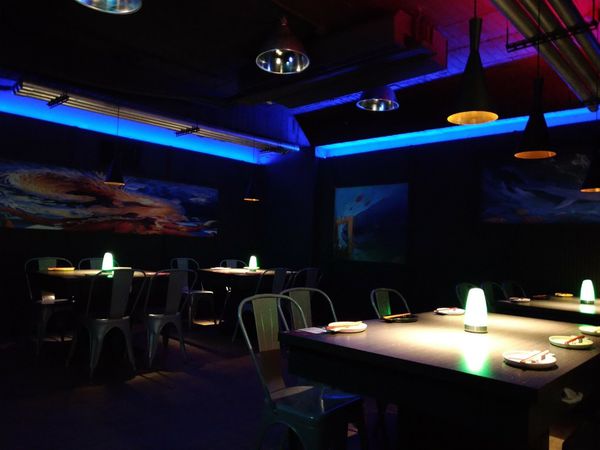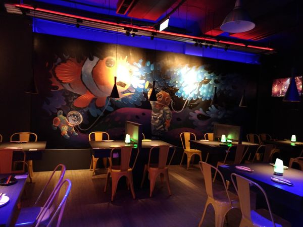 應用燈光及牆面彩繪,讓店內整個氣氛相當有夜店風