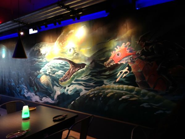 牆面可是大大 波濤洶湧的海 神獸 圖