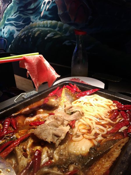 看看這魚肉厚實又富有彈性, 真的這樣子吃魚相當的霸氣, 而且烤魚本身除了很多膠原蛋白被釋出 外,裡面又加入熬煮10小時的豚骨高湯,與貴州高海拔的原生態豆皮辣椒/雲南花椒/四川藤椒/燈籠椒/山楜椒等13種中藥精華而成