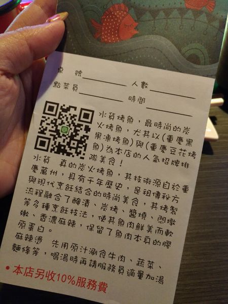 菜單 也非常可愛的有QR Code可以讓你清楚地知道 水貨 的來由, 畢竟他的技術源自於重慶萬州,具有千年歷史,是祖傳秘方與現代烹飪結合的時尚美食