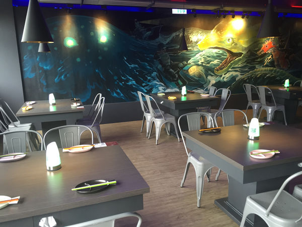 因為餐廳主食定位,所以整間餐廳都是海洋風的布置跟壁畫