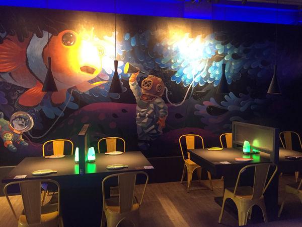 水貨烤魚的餐廳風格走的是海洋工業夜店風