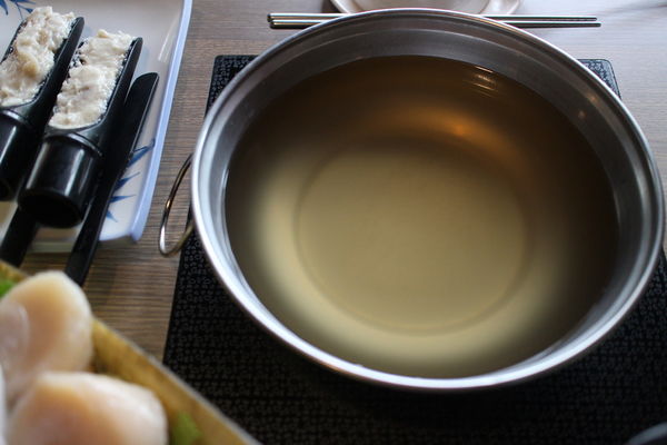 基本-昆布湯底:顏色呈淡琥珀色,鍋底沒什麼雜質
