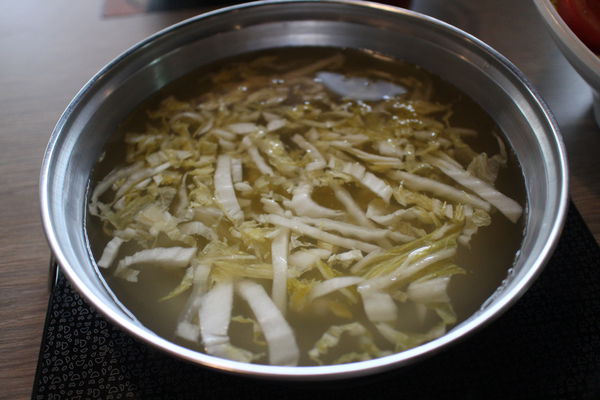 酸白菜湯底:有別於一般的酸白菜鍋,它的酸是用水果下去煮的