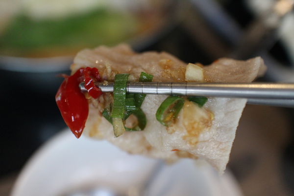 豬肉下去刷個兩下~再沾點醬汁真的很好吃