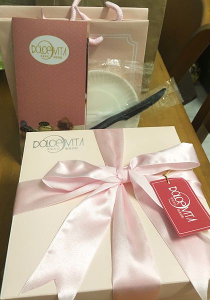 可以看到外觀是相當有質感的,從淺粉色的提袋、緞帶包裝的禮盒、內裝的特製蛋糕盒,都非常像精品,可以感受到設計的用心。