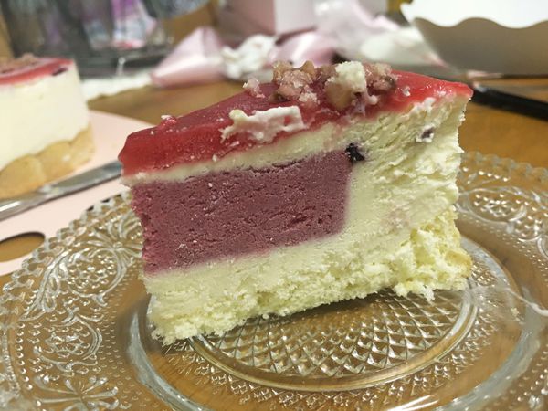 乳酪與慕斯的撞擊是否完美無瑕?這清爽高雅的口感,是來自覆盆子以及洛神花的特調慕斯,口感輕柔夢幻,酸甜適中比例拿捏得相當不錯,本以為這口味一定很甜,沒想到卻是貼心的減糖配方,難道店家知道妹子快胖死了XDDD