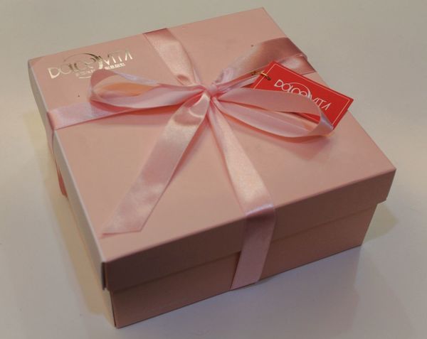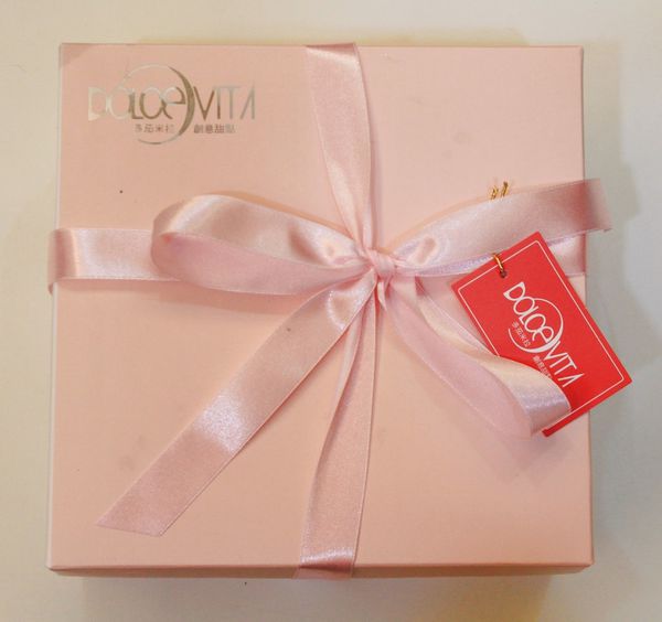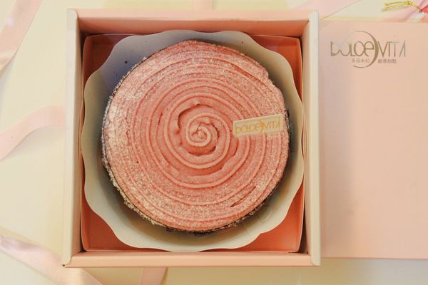 多茄米拉會依據不同的蛋糕,設計不同的包裝紙盒,天使芭蕾是很少女的粉色紙盒,綁上高雅的粉色緞帶。