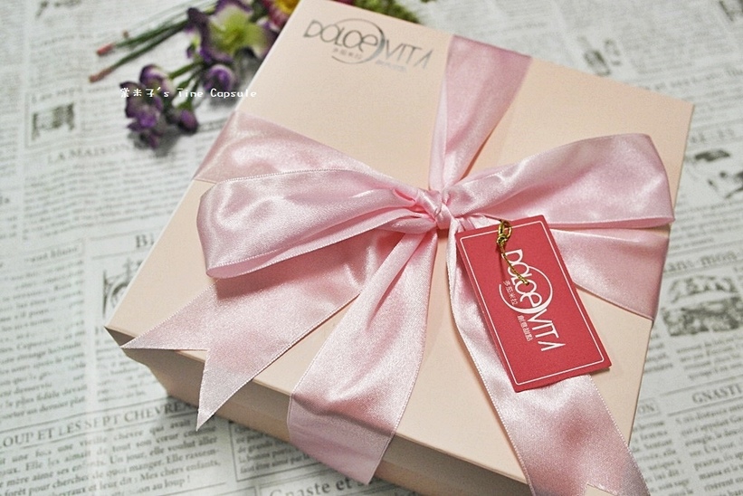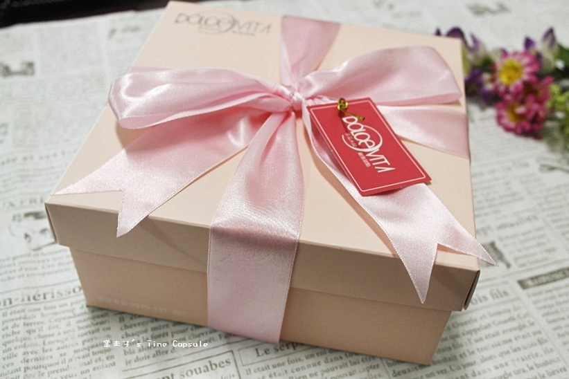 粉色的方形禮盒還綁上了粉色的緞帶,