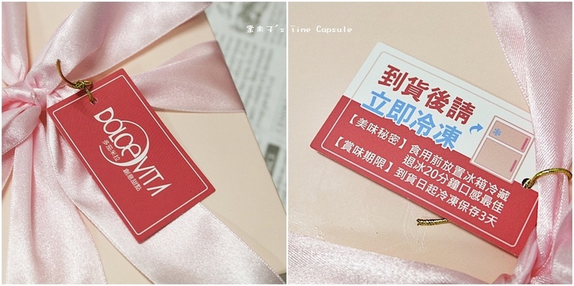 盒上的小掛牌貼心的提醒了蛋糕一道或要立即冷凍保存唷!!