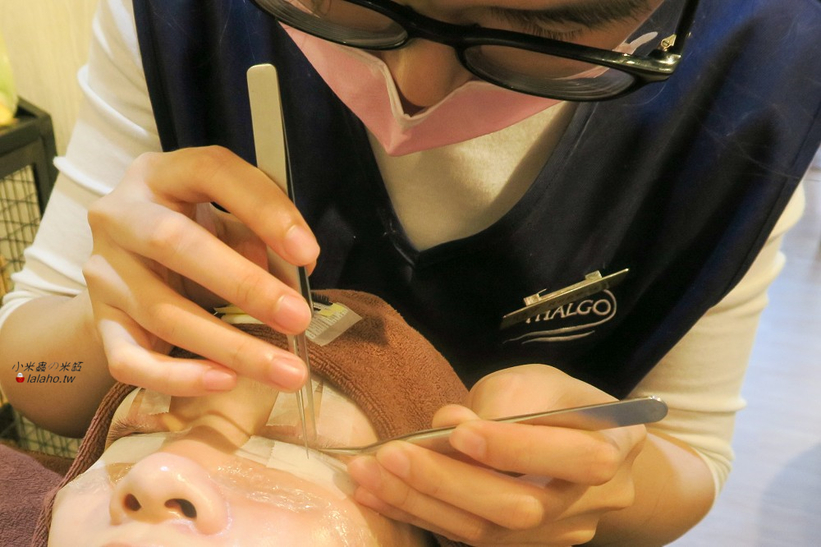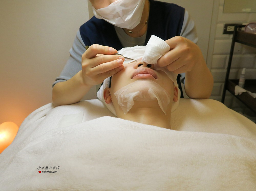 美容師會將要清粉刺部位的面膜掀開,針對那部位細心的清除粉刺