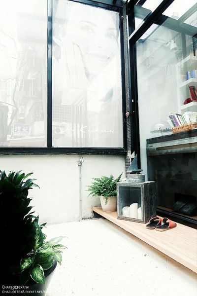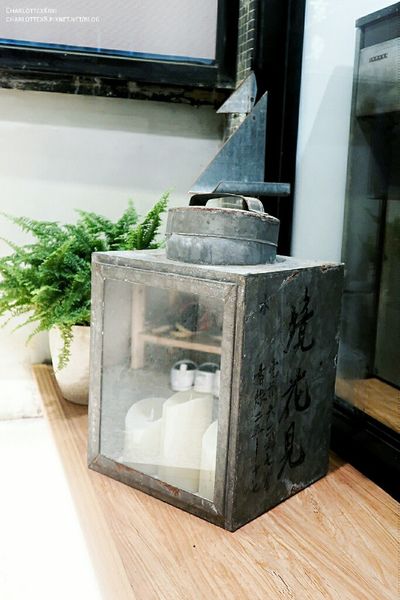 帶有日式風情的小庭院是更換鞋子的地方,進到內部一律換上店家提供的拖鞋,照片中造型特殊的燭台其實是個骨董,原本是日本早期的仙貝箱,而側邊牆上的香草植物不只是裝飾而已,據說也是左鄰右舍泡花草茶、做料理取材的好地方
