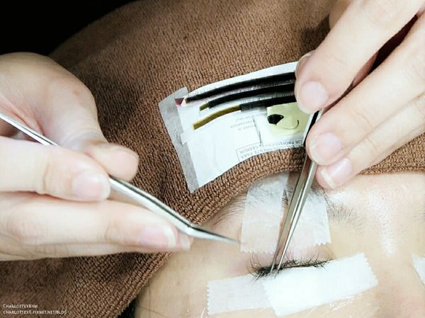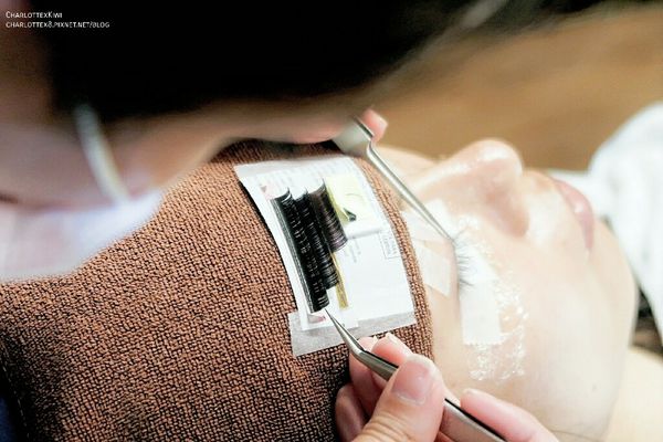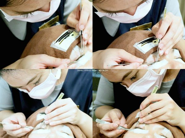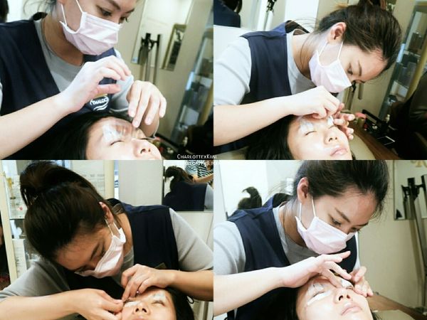 首先是右眼,美睫師Amanda很細心的將三種不同長度的水貂絲睫毛陸續接上。