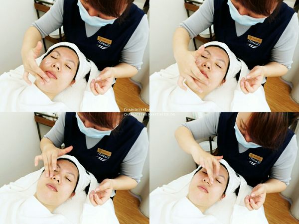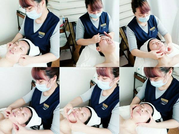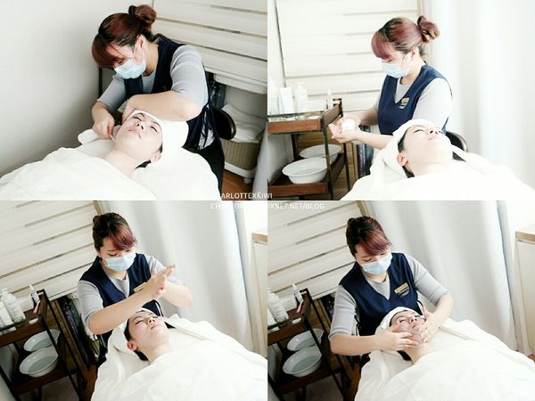 拔完粉刺一定要好好的安撫一下剛剛被刺激的肌膚,Rebecca的手溫溫熱熱的,感覺更能夠加速保養品的吸收,一種行動人體美膚儀的感覺XDDDD,而且她還幫我做了排水腫的臉部按摩,本來她怕我會痛只有跟我提一下,我說為了瘦一點痛算什麼(握拳)