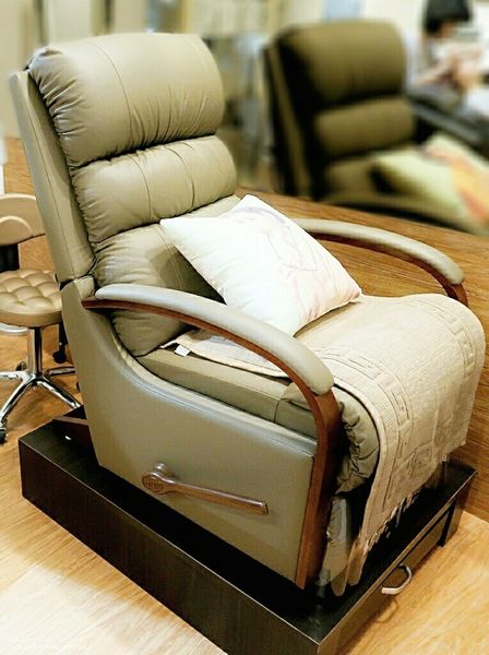 接睫毛時躺在這張可以變身躺椅的沙發椅上,這椅子躺起來蠻舒服的,整個很有包覆感。