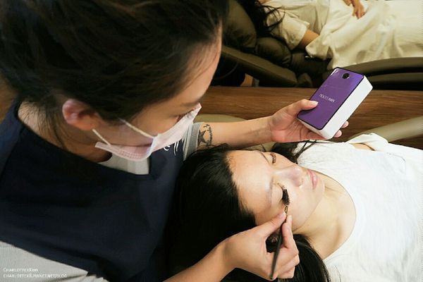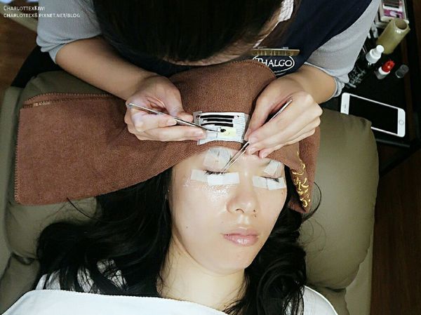 接著換左眼,兩眼都完成後,Amanda會再看看兩邊眼睛是否平衡,還有沒有需要補強的地方;而且Amanda的動作極為輕柔,我居然可以接到睡著XDDDD