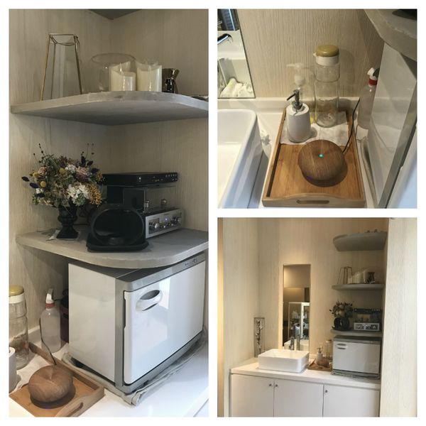 衛浴空間走簡單風格,一些簡單的生理備品也幫你準備好!!