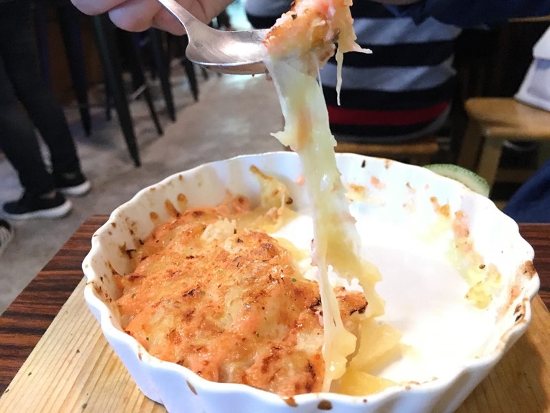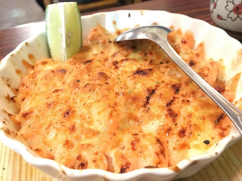 明太子+鳳梨+雪花魚+起司焗烤,風味獨特,吃起來口感清爽,雪花魚的感覺有點像蟹肉(?),但整道菜味道偏甜,可能是鳳梨的關係,明太子比較淡一點。