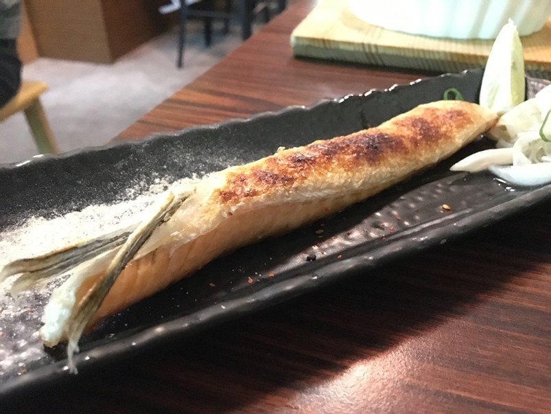 鮭魚肚本身味道鮮美,無論是不搭配料或是只沾椒鹽或是擠點檸檬汁都不錯!