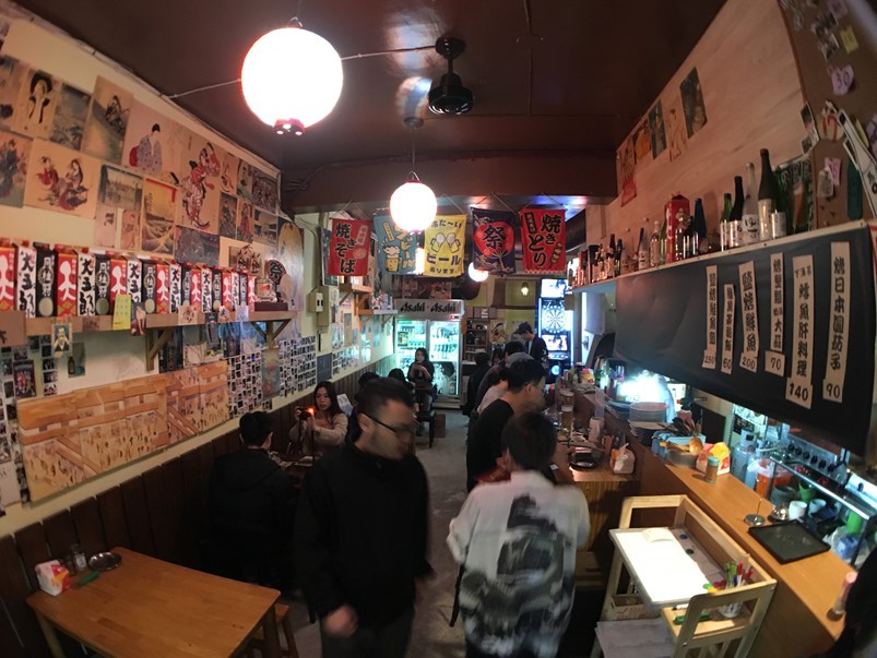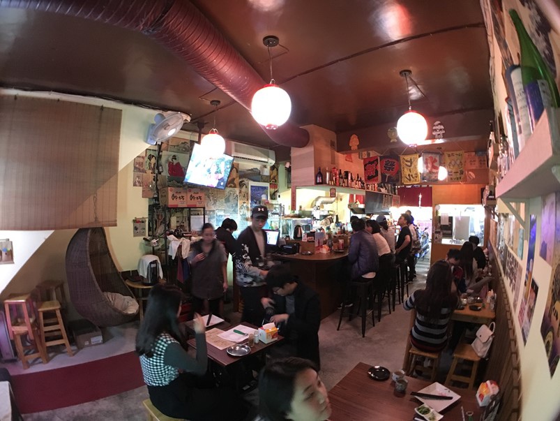 店內滿滿的日式風格,大致分為吧台區跟四人桌,最裡面是冰櫃、鏢機