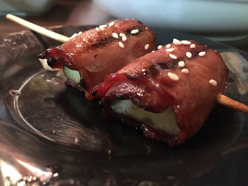 就是培根捲小黃瓜,搭配的醬料偏甜味,不難吃但也不知道怎麼形容,就是所見即所得XD