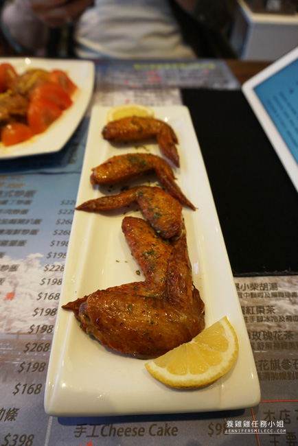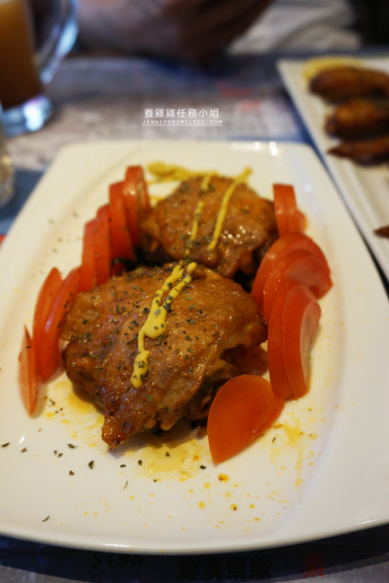 我們的餐點上桌囉!先來的是兩份雞肉料理,分別是法式雞腿和招牌檸檬雞翅。我覺得這兩道都非常的有味道,雞腿排的調味有點點南洋的風味,肉質還是維持得很juicy,酸酸甜甜的夏天很開胃。