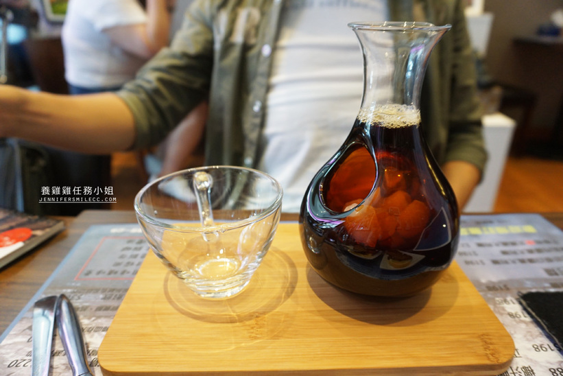 點餐的時候,老闆詢問了我喜歡哪一種咖啡,我大概就平常的習慣告訴了老闆,老闆聽到我能接受黑咖啡,立即拿出了他泡好的咖啡,特別的是這就是老闆的冰滴咖啡。老闆說,在台灣冰滴咖啡會放在門口,道具很大型很驚訝在那邊滴滴滴,其實那只是噱頭罷了,所謂的量少就可以哄抬物價呀!我聽到這邊覺得對於我過去花的新台幣感到不捨,畢竟我好愛喝冰滴阿