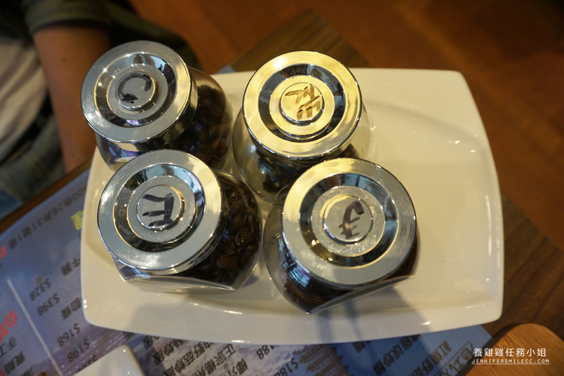 老闆還讓我們聞聞這些豆子,寫著C的就是焦糖風味的豆子呀!