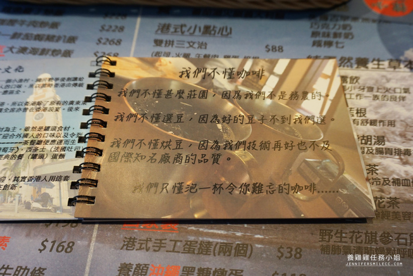 打開菜單後,先看到很特別的一段話,這段話我剛開始有點一頭霧水,覺得我今天不是就是來一間咖啡廳嗎?怎麼有咖啡廳和我說他不懂咖啡?其實這句話另有含意,讓我們看下去。
